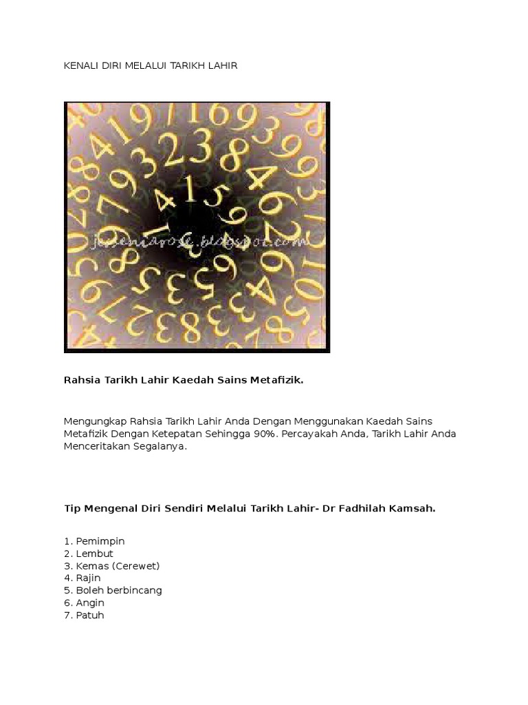 Kenali Diri Melalui Tarikh Lahir Pdf